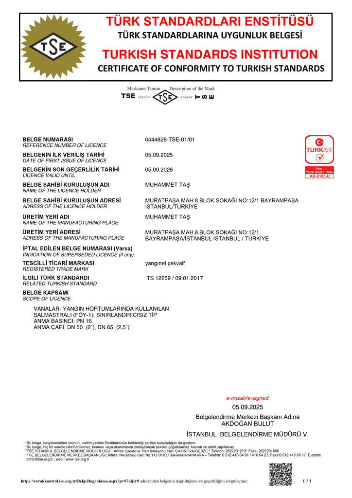 TS 12259 Yangın Vanaları